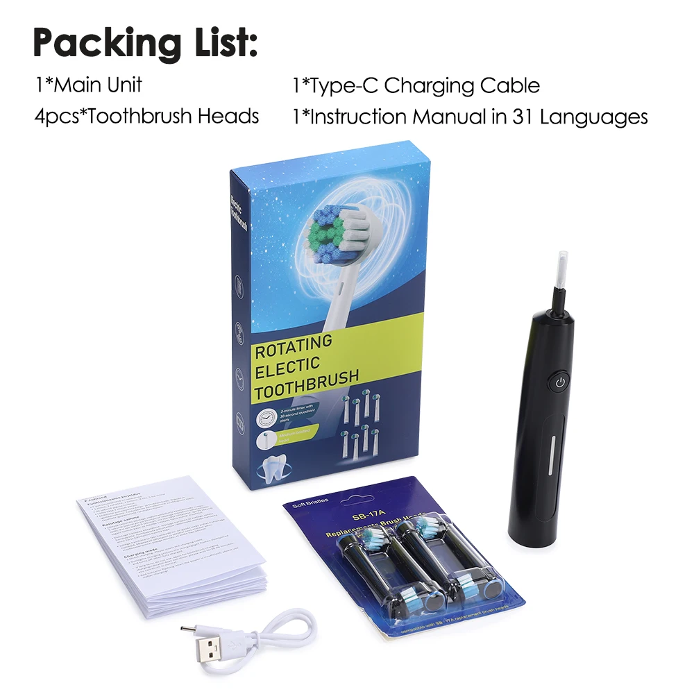 5. Our wireless electric toothbrush includes 4 replacement brush heads and maintains 7500 rotations per minute to deliver consistent and effective cleaning performance.
